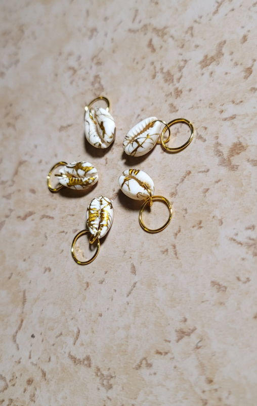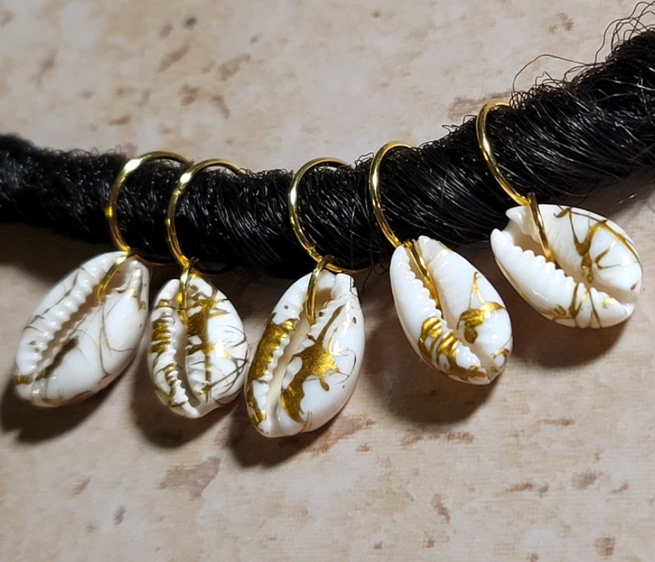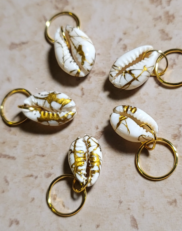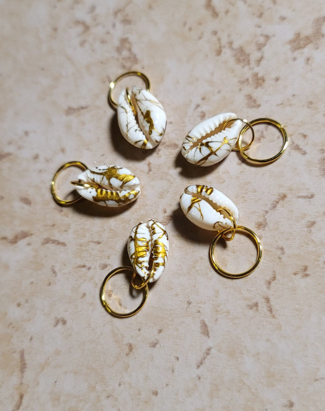 5pcs 12mm Gold Cowrie Shell Charm Hair Rings Perfect For Dreadlocks, Braids, Twist, Plaits, Buns & Up-dos