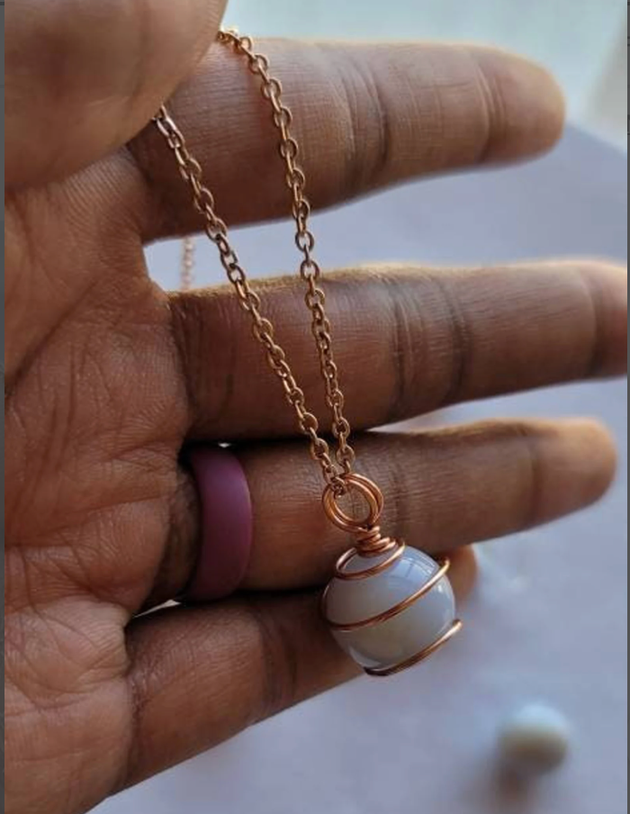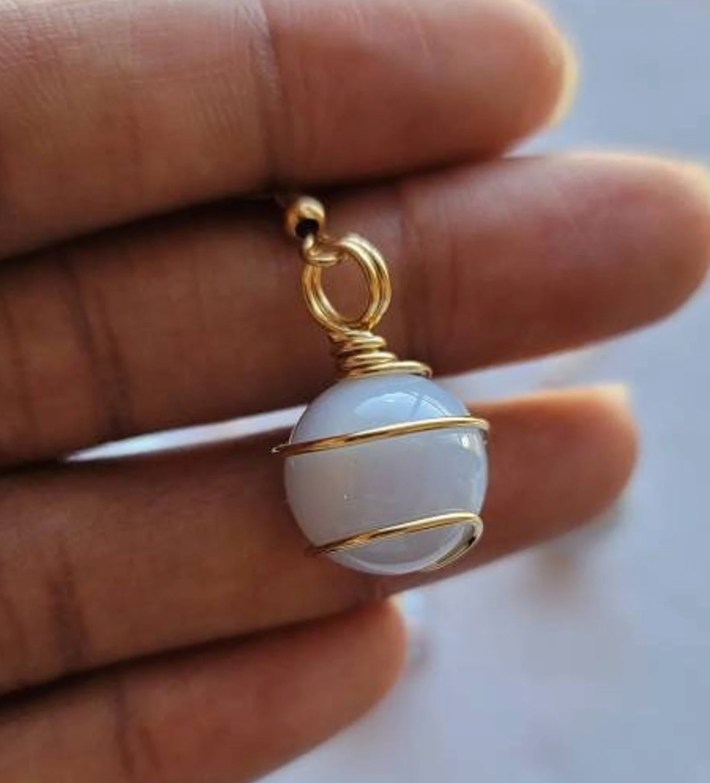 Go to the shopCaged Crystal Pendant Necklaces*Handmade*All crystal are unique and may colors vary slightly from photos*Pendant necklace chain is stainless steel 20 inches long*12mm genuine Chalcedony BeadsChalcedony is a nurturing stone that promotes brotherhood and good will. It absorbs negative energy. It brings the mind, body, emotions and spirit into harmony.All are...