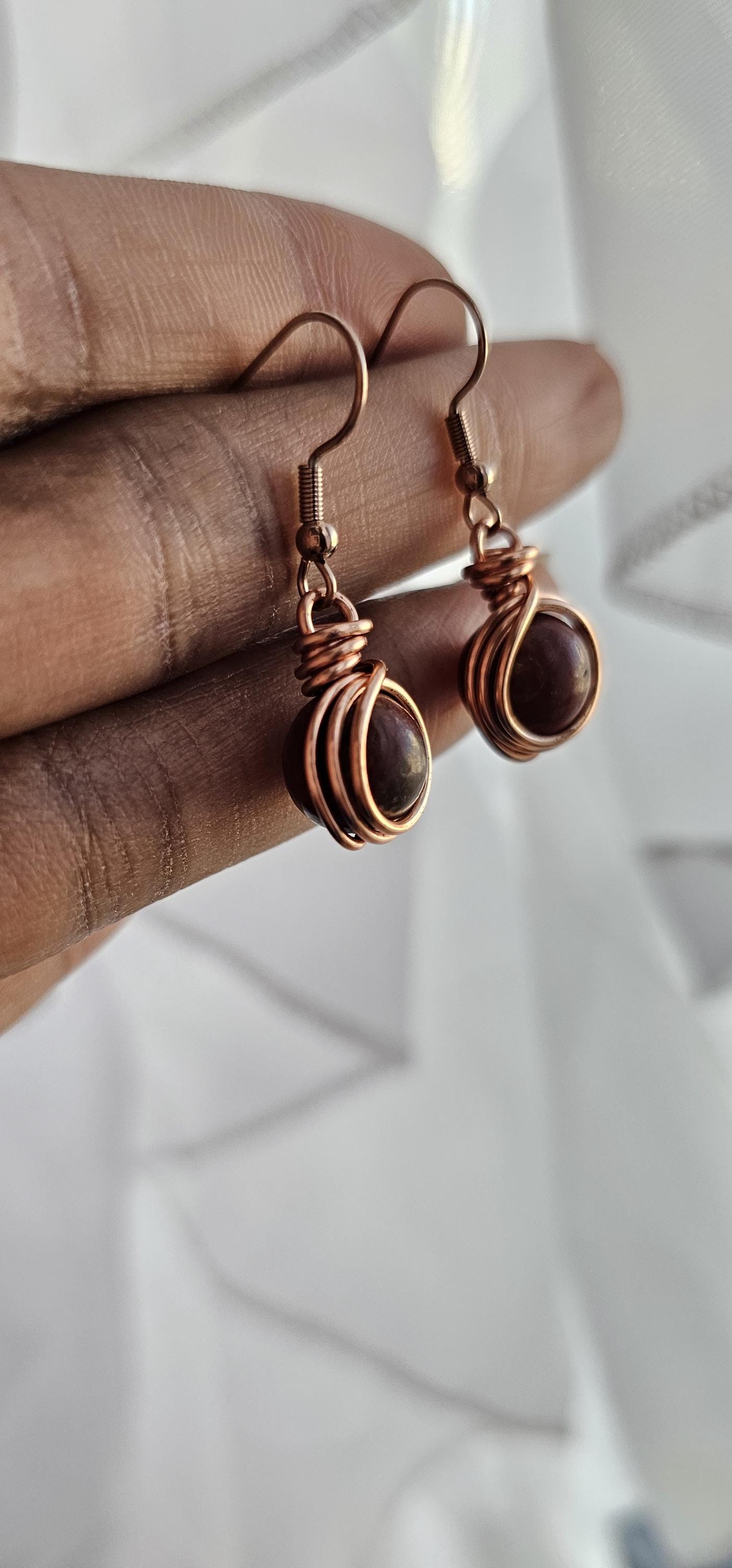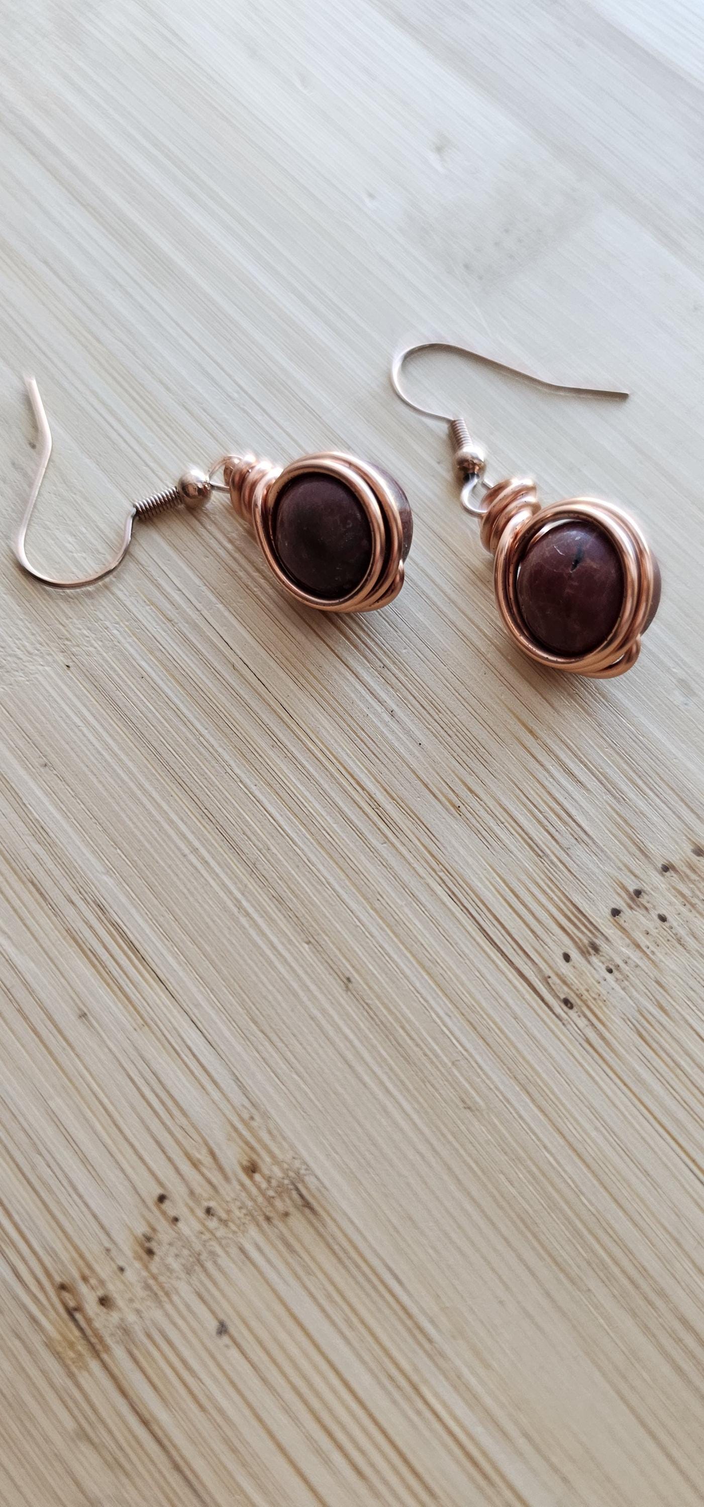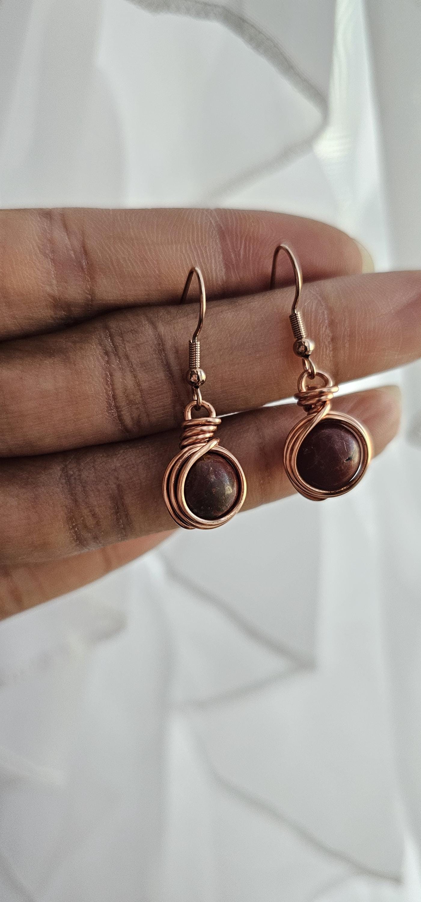 Go to the shopCopper Wire Wrapped Crystal Earrings * Genuine raw natural stone * Every piece is handmade and unique, so it could be slightly different then the photo. * Comes in copper, silver or gold wire * Wire wrapped with top quality tarnish resistant copper wire * Lightweight, easy on the ears...