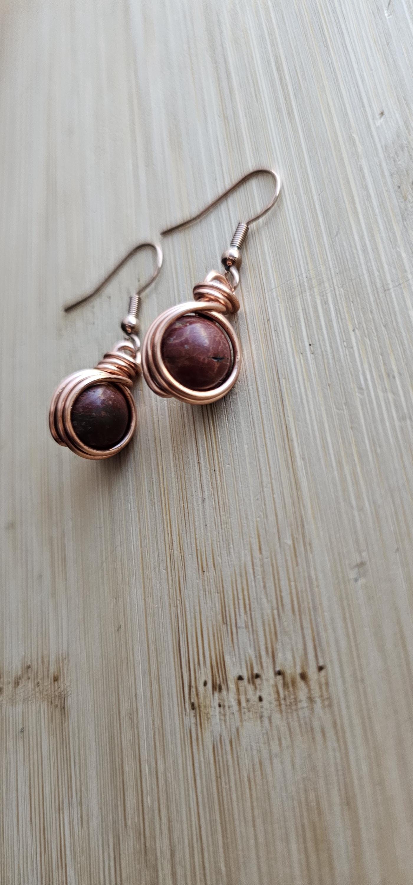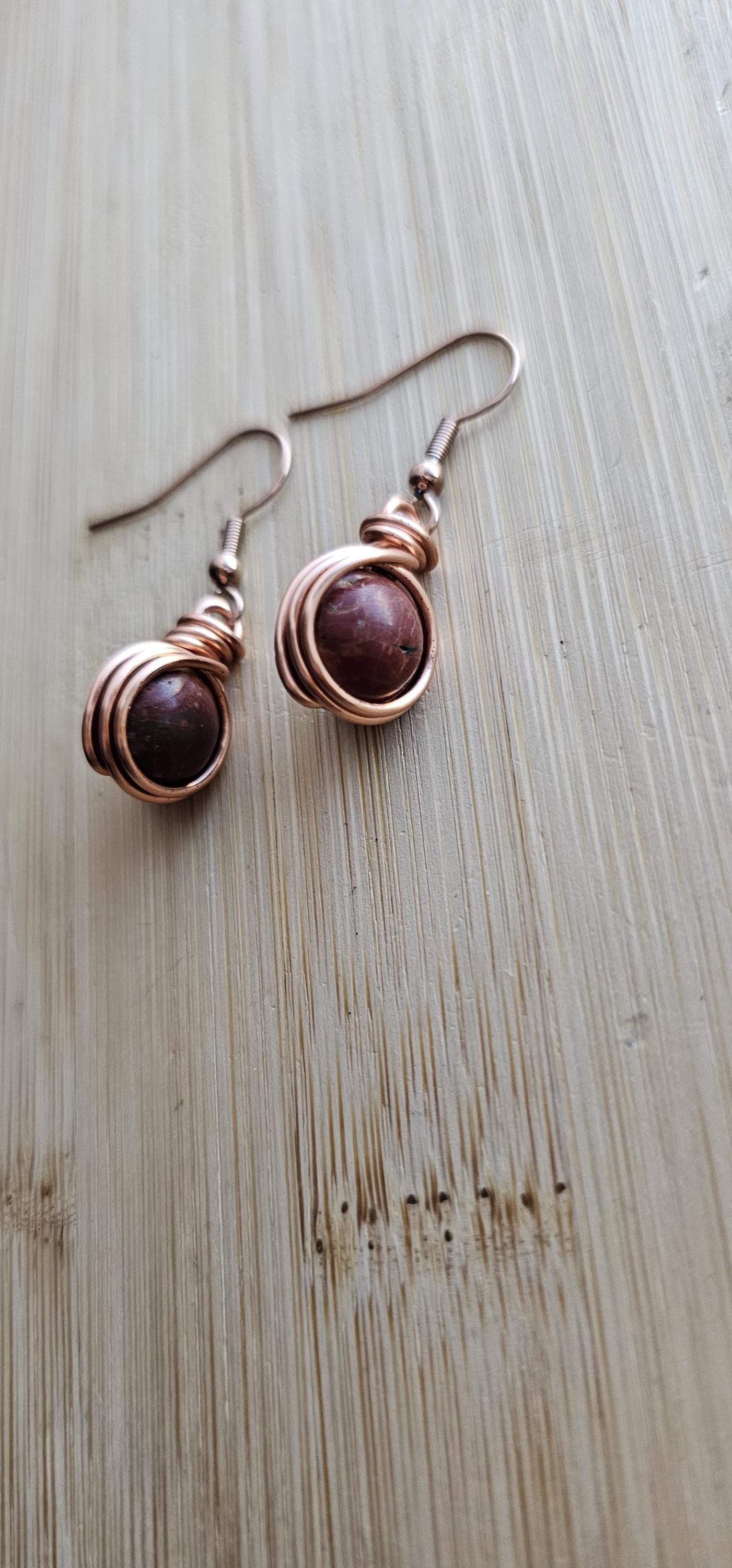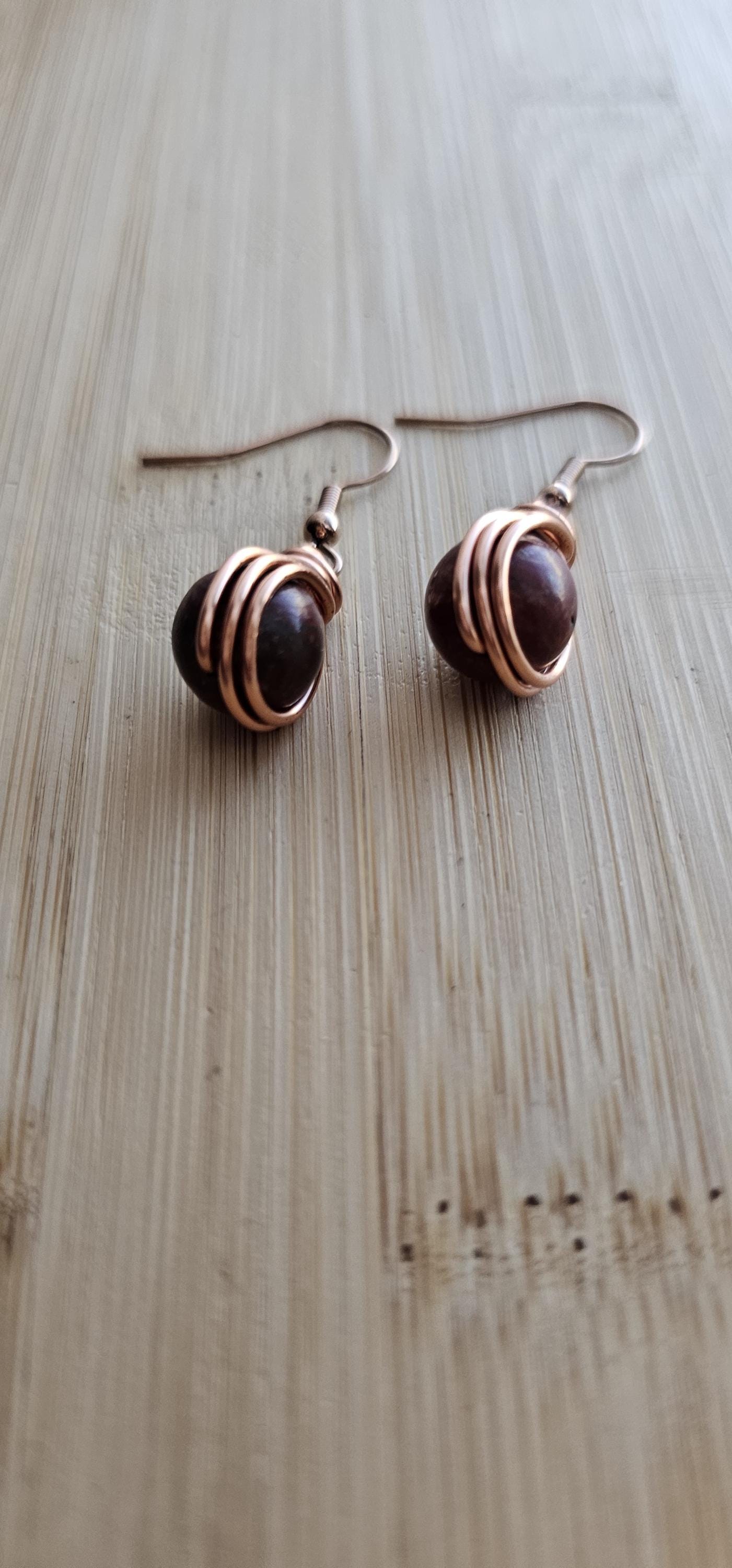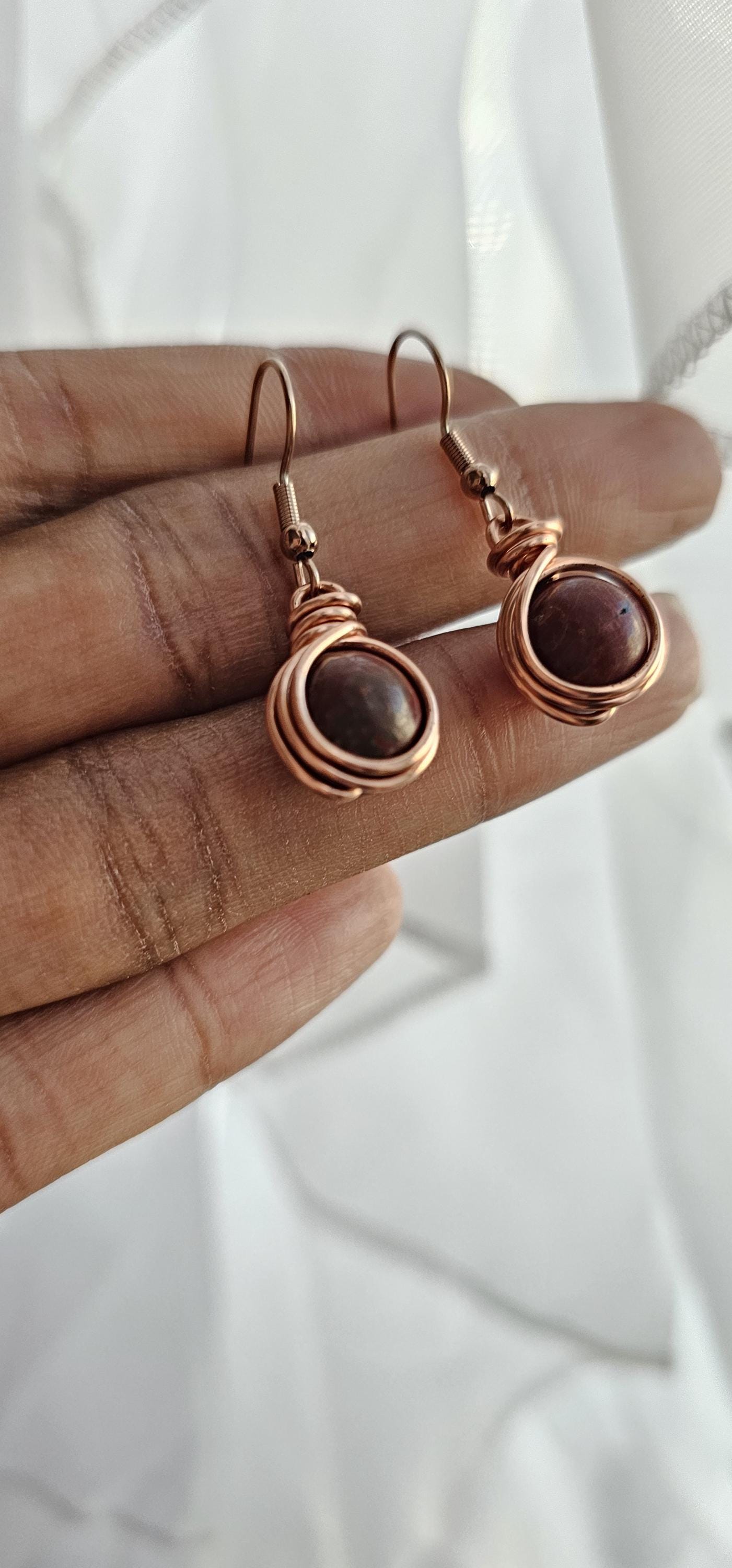Go to the shopCopper Wire Wrapped Crystal Earrings * Genuine raw natural stone * Every piece is handmade and unique, so it could be slightly different then the photo. * Comes in copper, silver or gold wire * Wire wrapped with top quality tarnish resistant copper wire * Lightweight, easy on the ears...