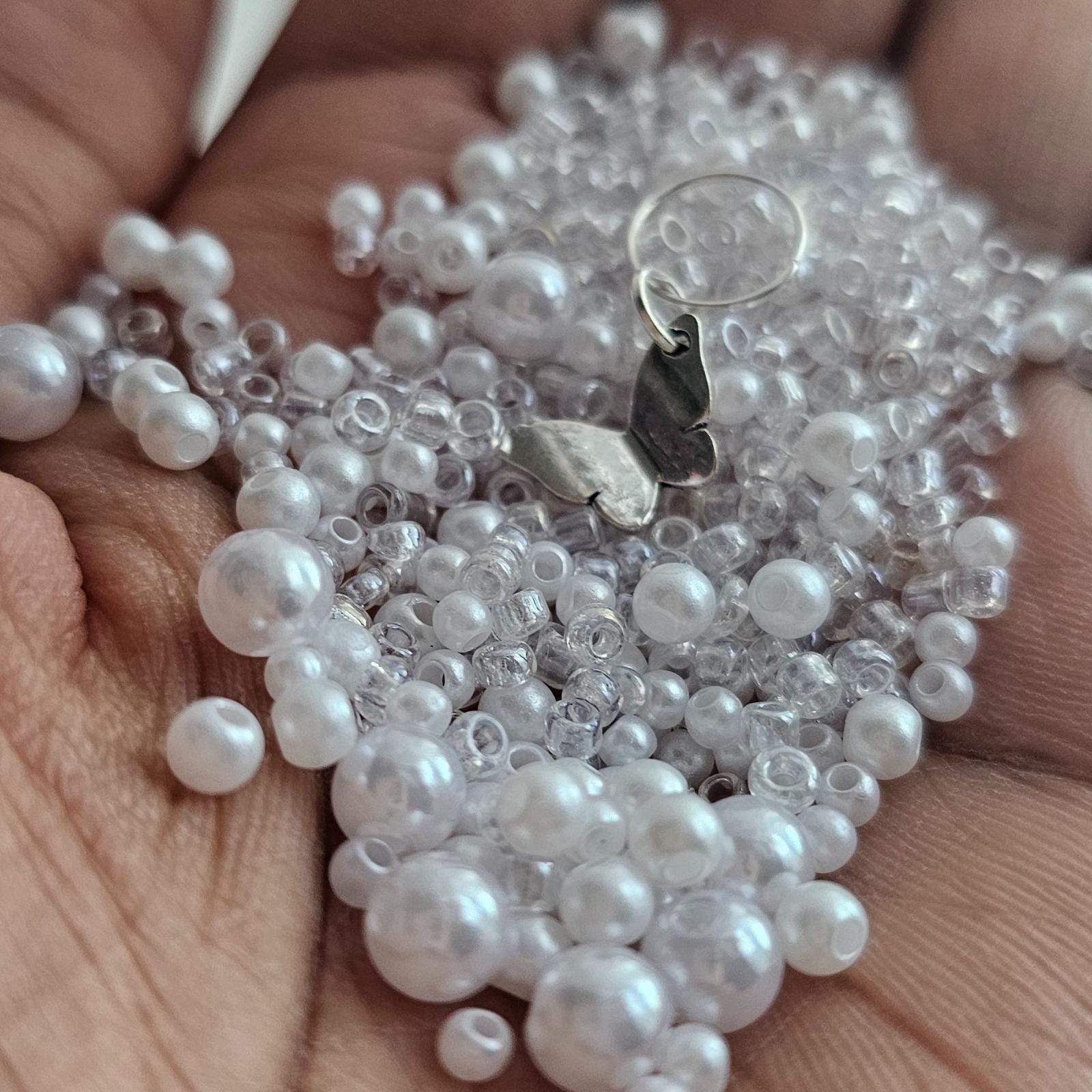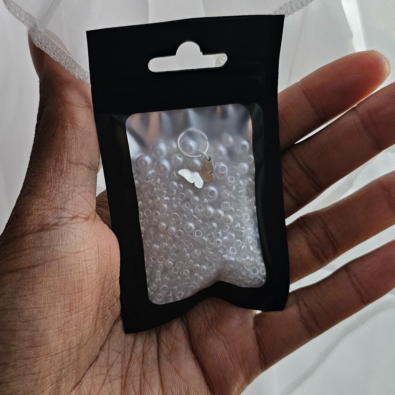 Channel divine bridal energy with the Wedding Goddess Loc Sprinkles — a luminous bead mix designed to add elegance and ethereal beauty to your locs. Hand-curated with a soft, pearlescent glow, these sprinkles feature a delicate blend of acrylic imitation pearl beads in 6mm, 4mm, and 3mm sizes paired with glass luminous 8/0 seed beads for subtle shimmer and shine.