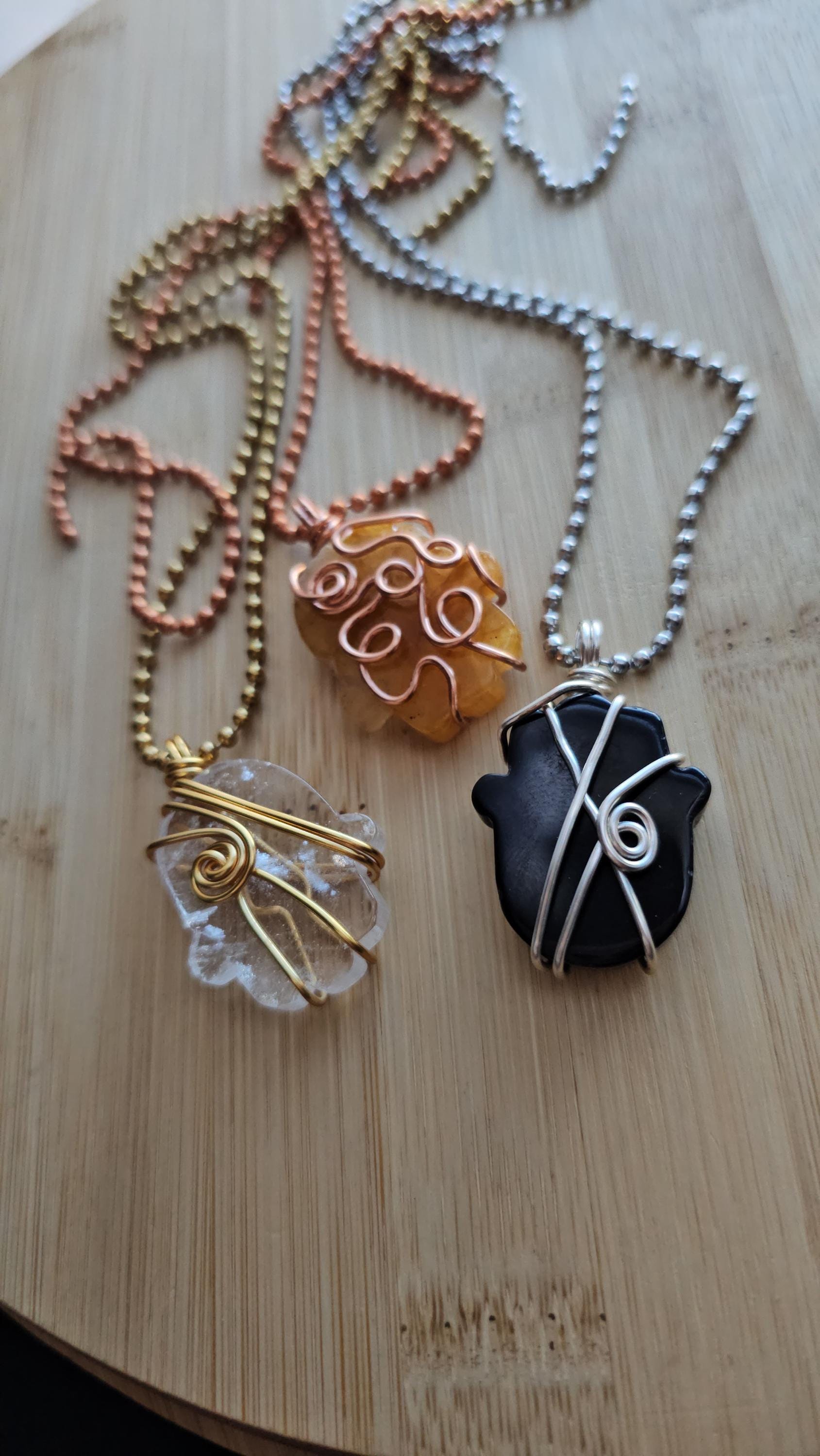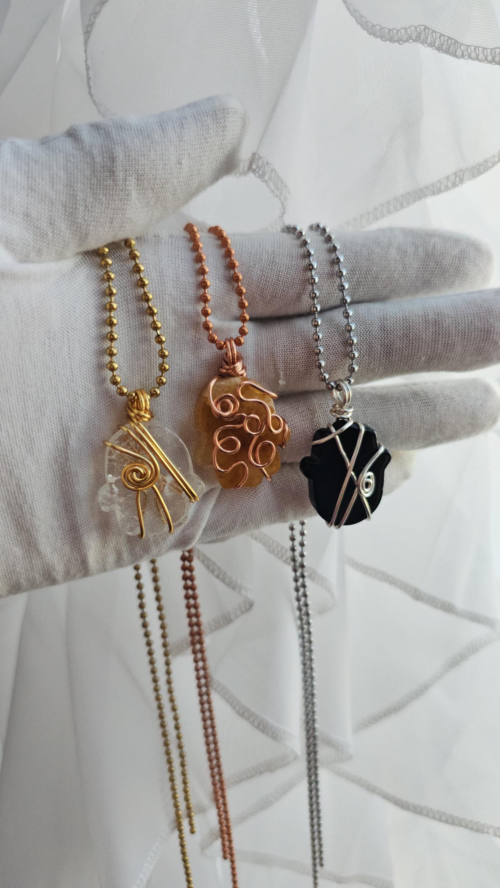 🪬 Wire Wrapped Hamsa Hand Crystal Pendant Necklace – Custom Stone, Wire & Chain Style Carry protection, positivity, and personal style with these Hamsa Hand Crystal Pendant Necklaces, each one handcrafted with care and intention. Choose your favorite stone, wire color, and chain style to create a piece that’s truly...