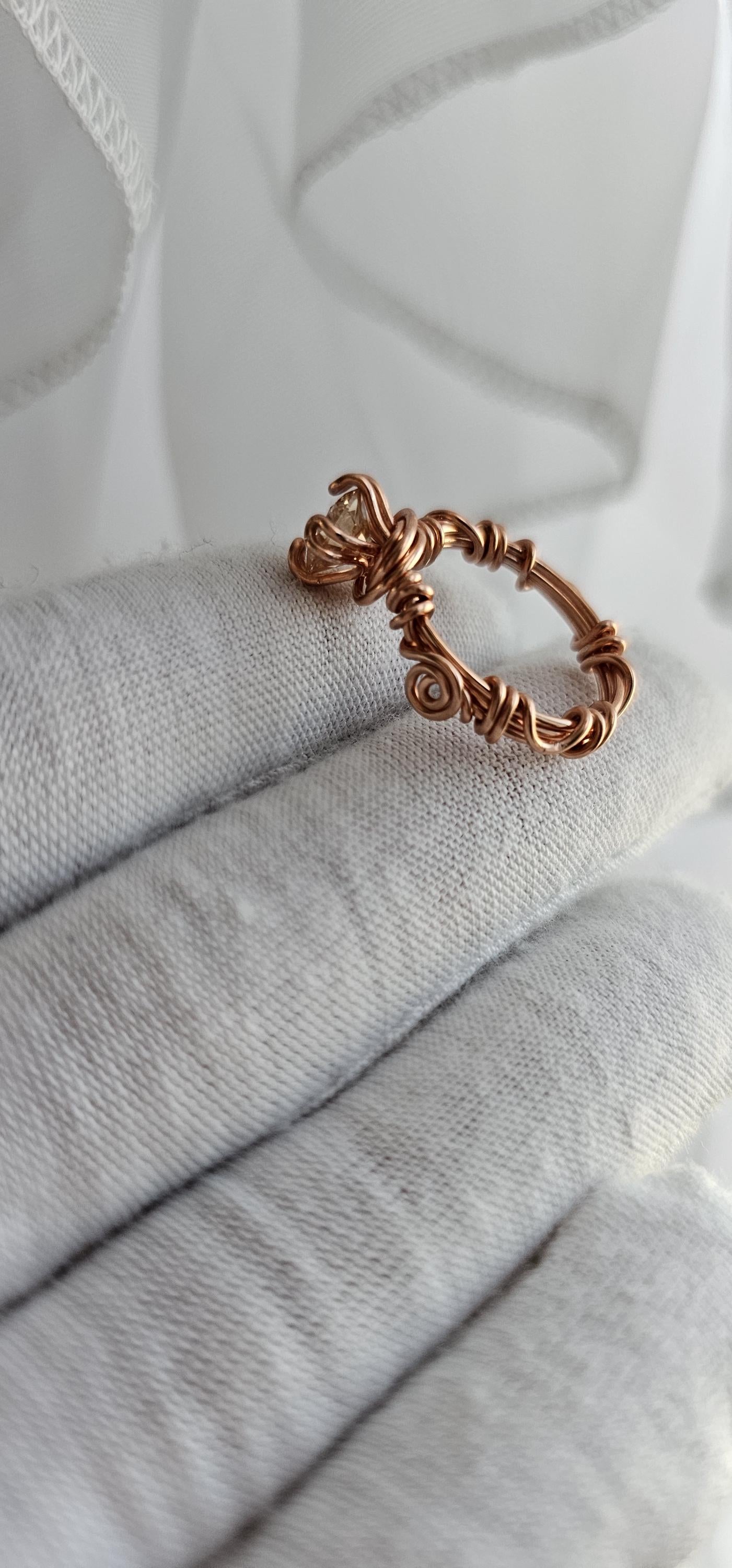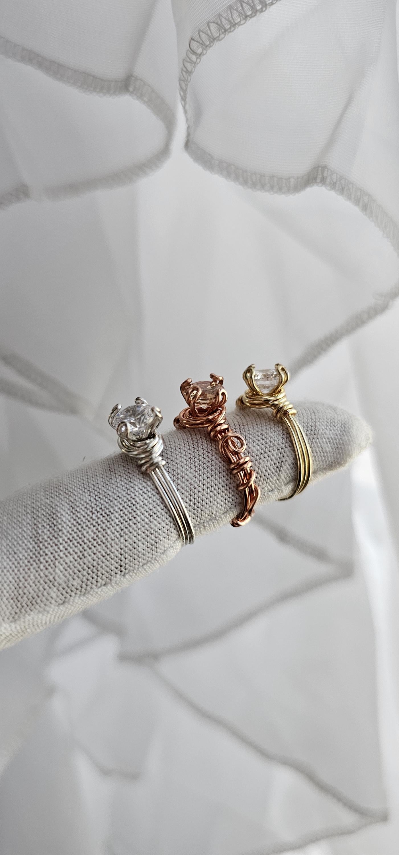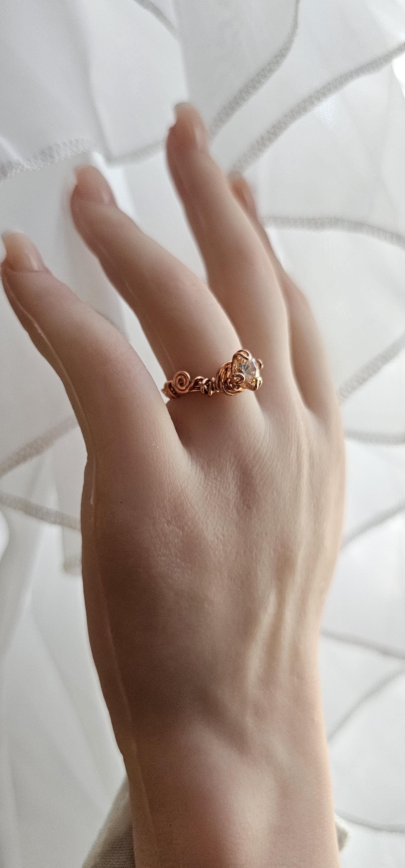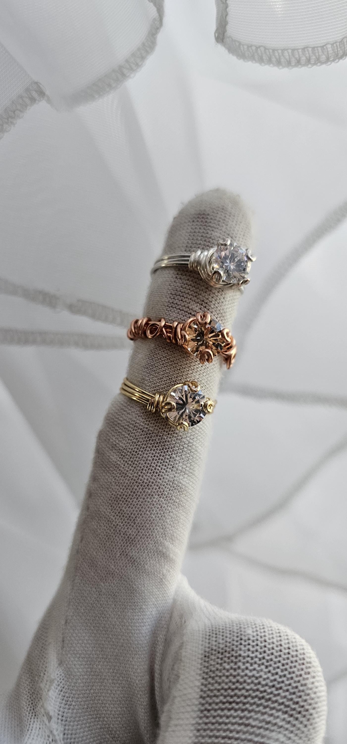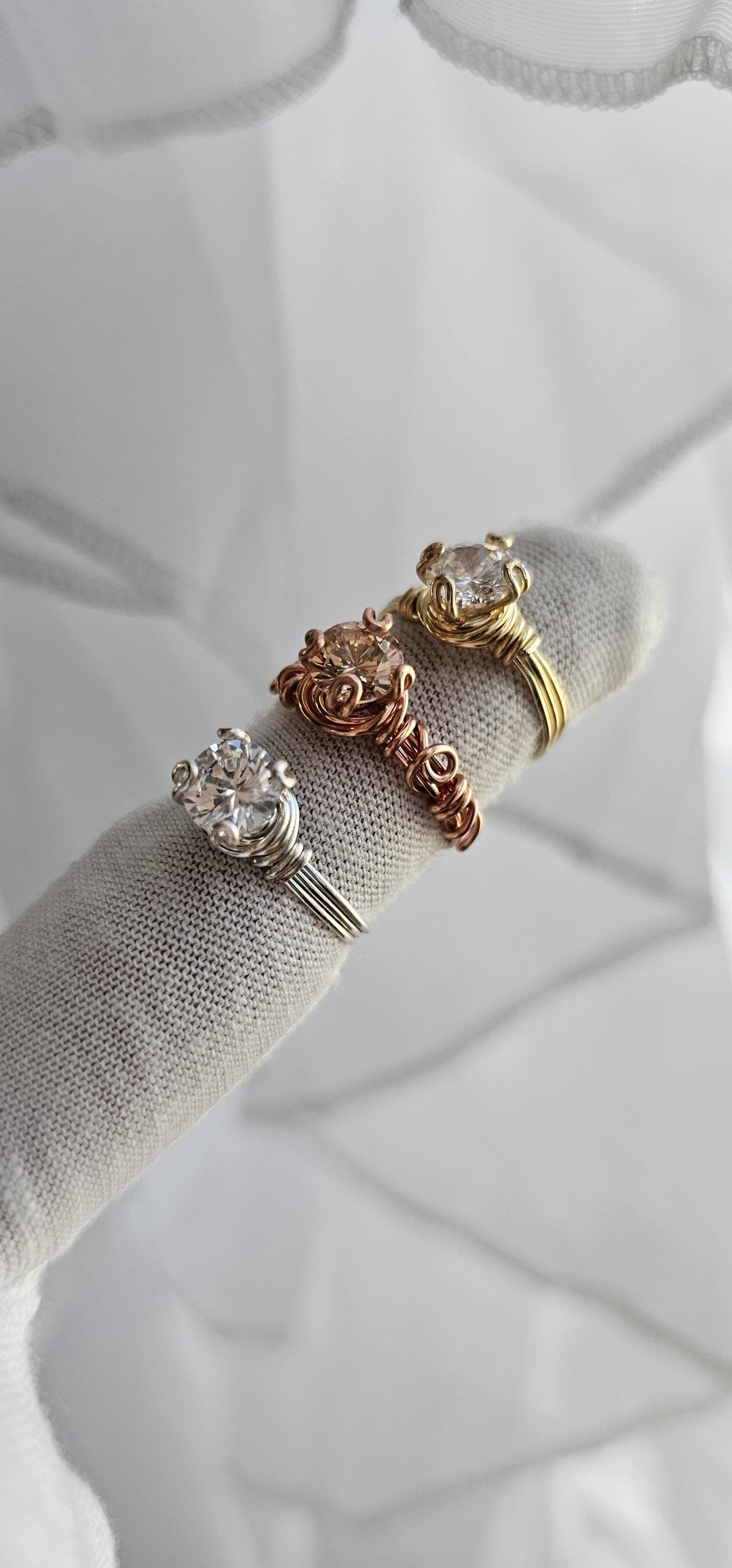Copper Wire Wrapped Cubic Zirconia Rings – Handmade