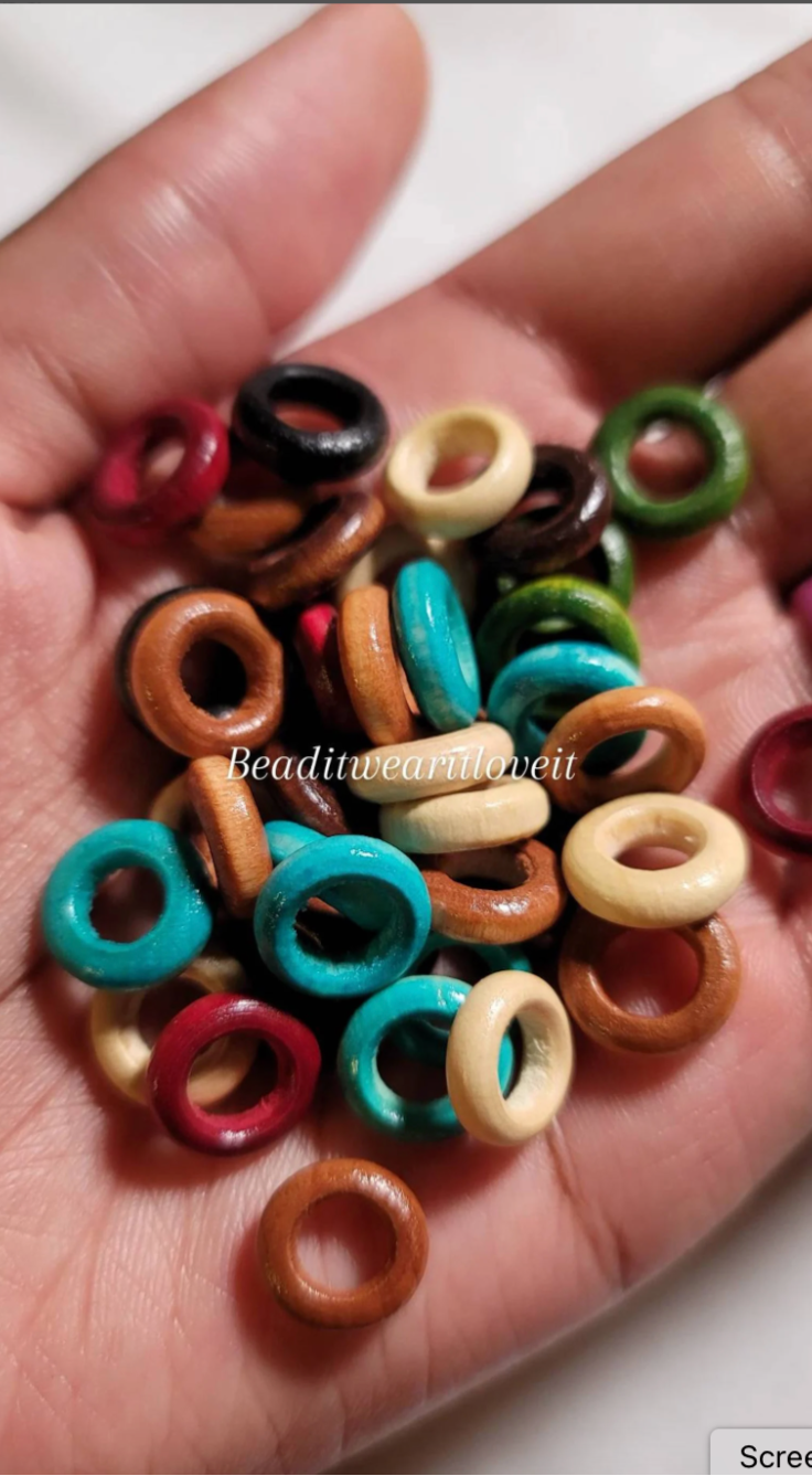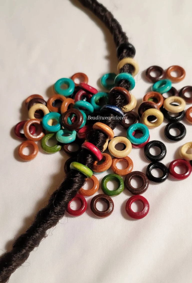 Go to the shopWide Hole Wood Beads For Small/Medium Locs, Twist, Braids, Faux Locs, Goddess Locs etc...*Price is for a pack of 10 beads, color of your choice*Rondell Style Beads*All beads have a 6mm inner hole*13mm outer diameter*All are unique, colors may vary slightly from photos*Also great for jewelry and other DIY projectsWhat...
