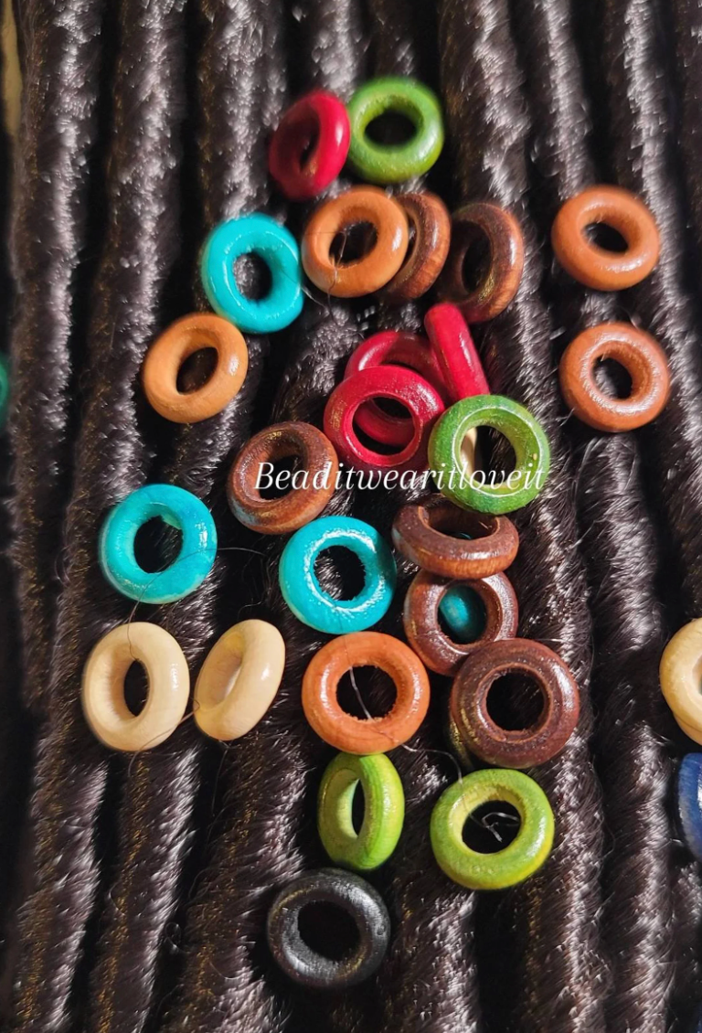 Wide Hole Wood Beads For Small/Medium Locs, Twist, Braids, Faux Locs, Goddess Locs etc...