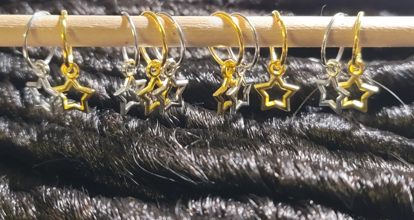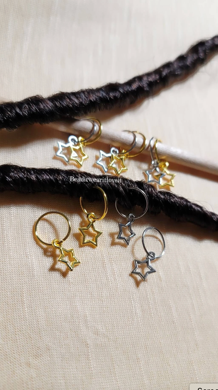 Go to the shop5pcs Star Hair Rings Perfect For Children & Adults With Dreadlocks, Braids, Twist, Plaits, Buns & Up-dos-Add hair rings to a variety of hair styles for a classic and unique look. Simply open ring by twisting gently sideways. Apply to desired location then gently twist back together. Do not pull...