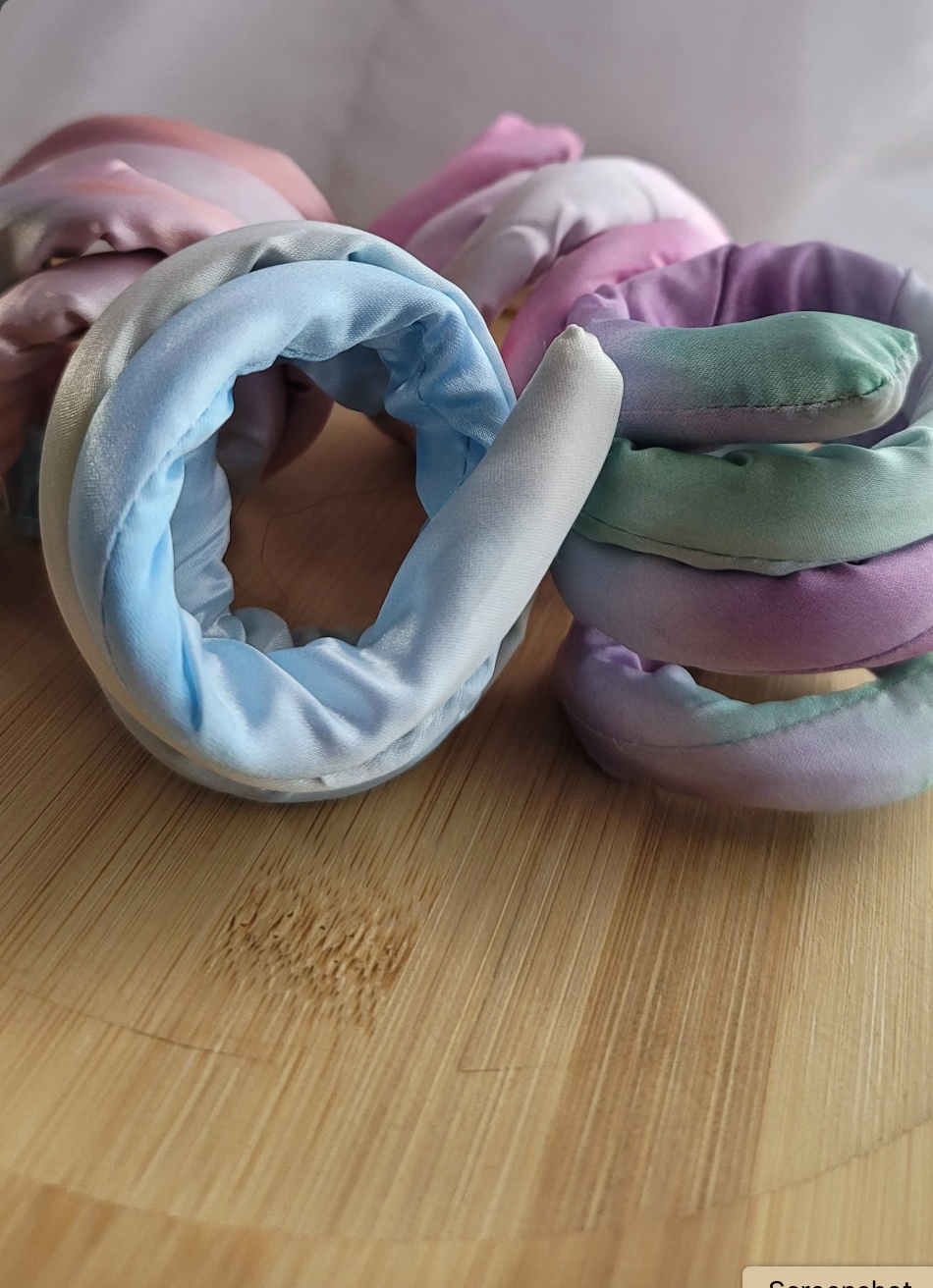 Introducing our Satin Bendable Hair Ties – the perfect blend of style and functionality. Available in four enchanting color combinations - blue/peach, blue/yellow, pink/cream, and purple/green - these ties bring a touch of elegance to your hair. Crafted with a bendable design, they ensure a comfortable fit while holding your hair securely. Elevate your hair game with these chic and versatile hair ties, offering a charming way to keep your locks in place with a satin twist.