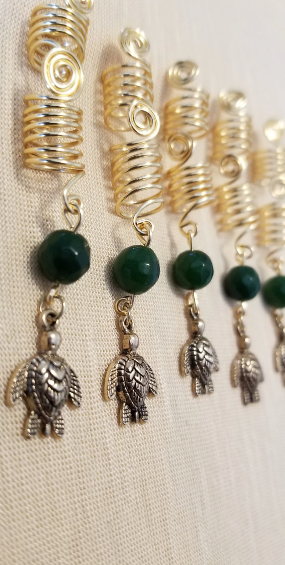 Go to the shopBeautiful loc jewelry with a turtle charm and jade bead*Handmade*Copper*#2 Pencil Size*Each bead is handmade and may vary slightly from photos*1pc=1 bead 2pc=2 bead.... etcAll are handmade with top quality tarnish resistant 18 and 20 gage copper wire.Wearing copper and crystal jewelry is believed to offer an abundance of benefits,...