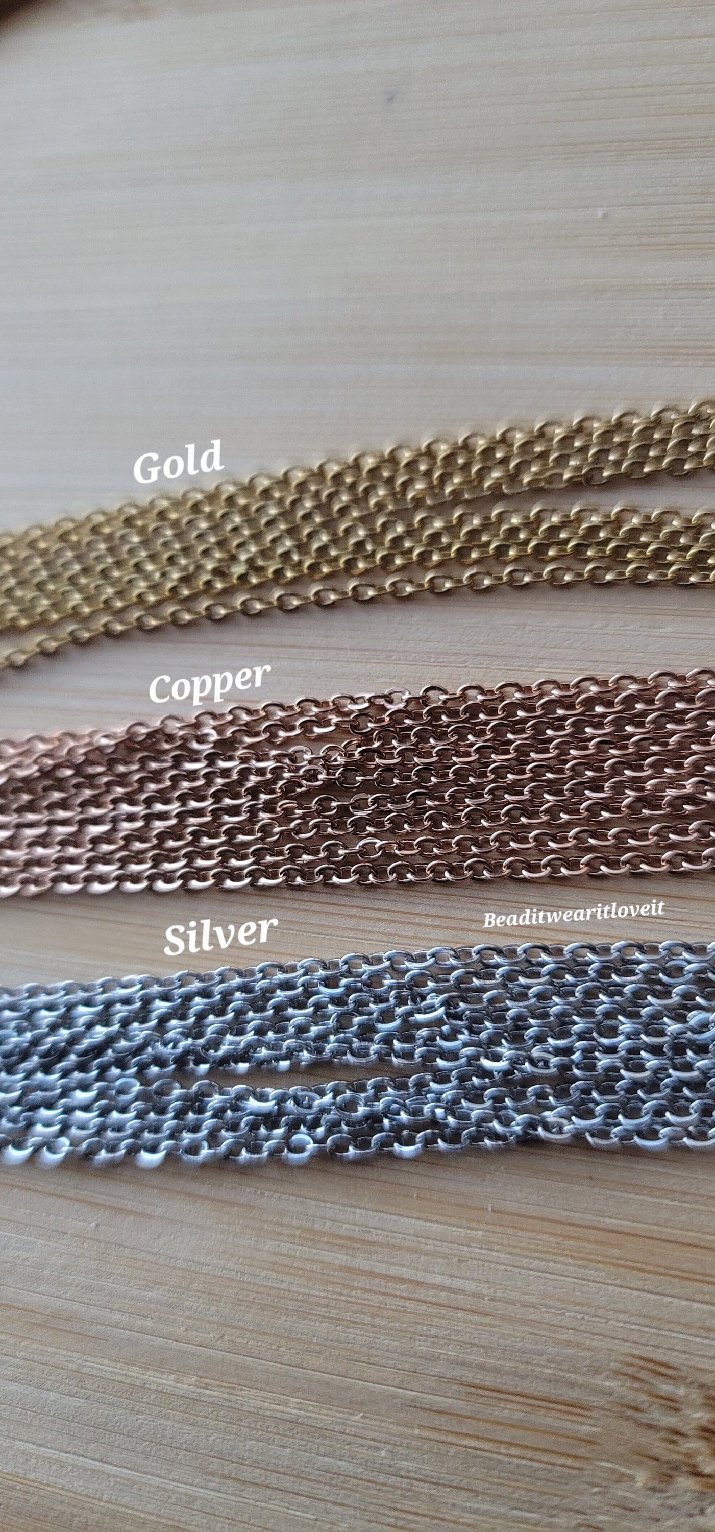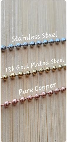 Necklace materials: Copper ball chain is pure bare copper, all other styles and colors are stainless steel