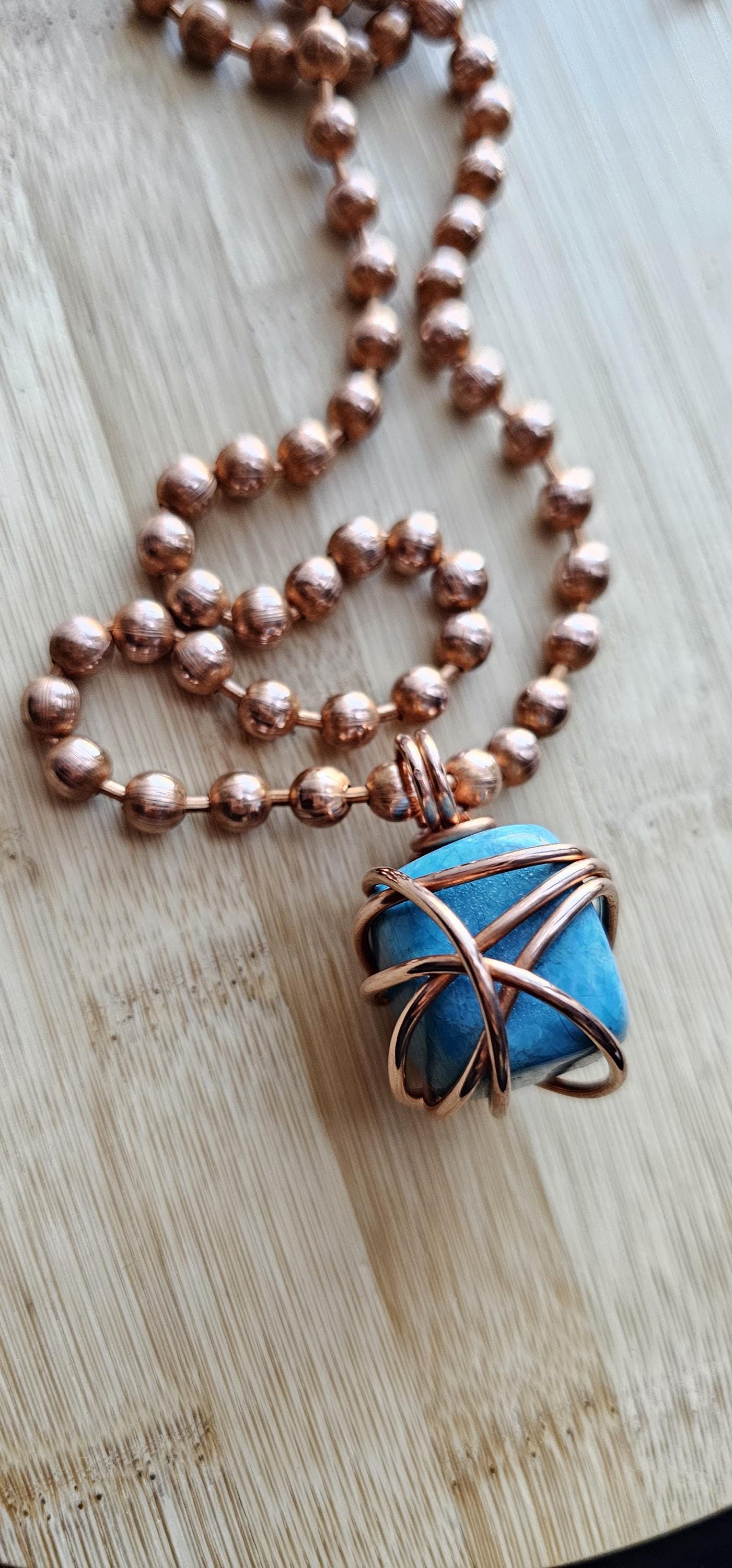 Turquoise Howlite Chunky Ball Chain Crystal Necklaces, Gemstone Pendant Necklace, Spiritual Jewelry, Calm, Communication, Balance